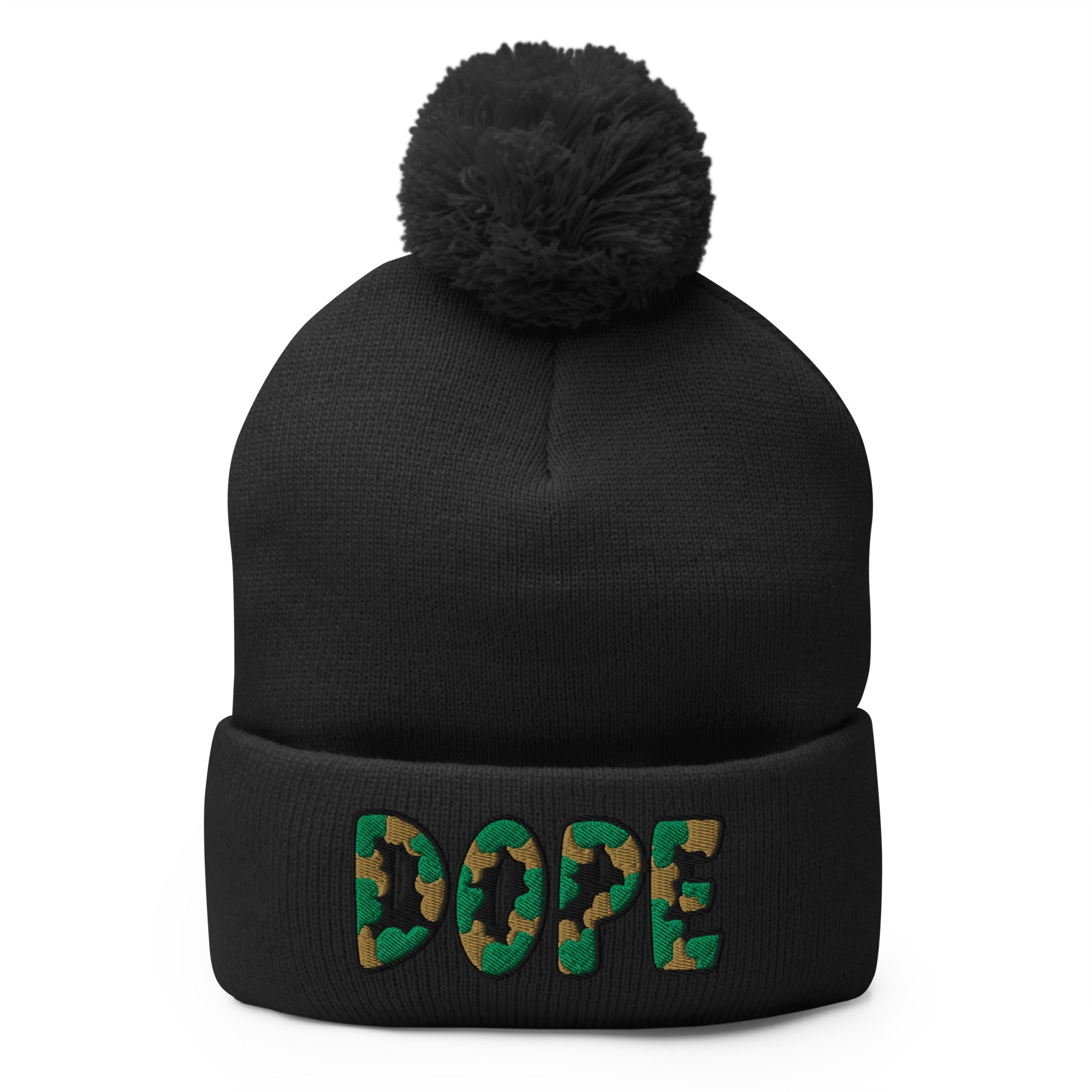 Exclusive Rebel P Customs Dope Patched Pom Pom Beanie Hat.