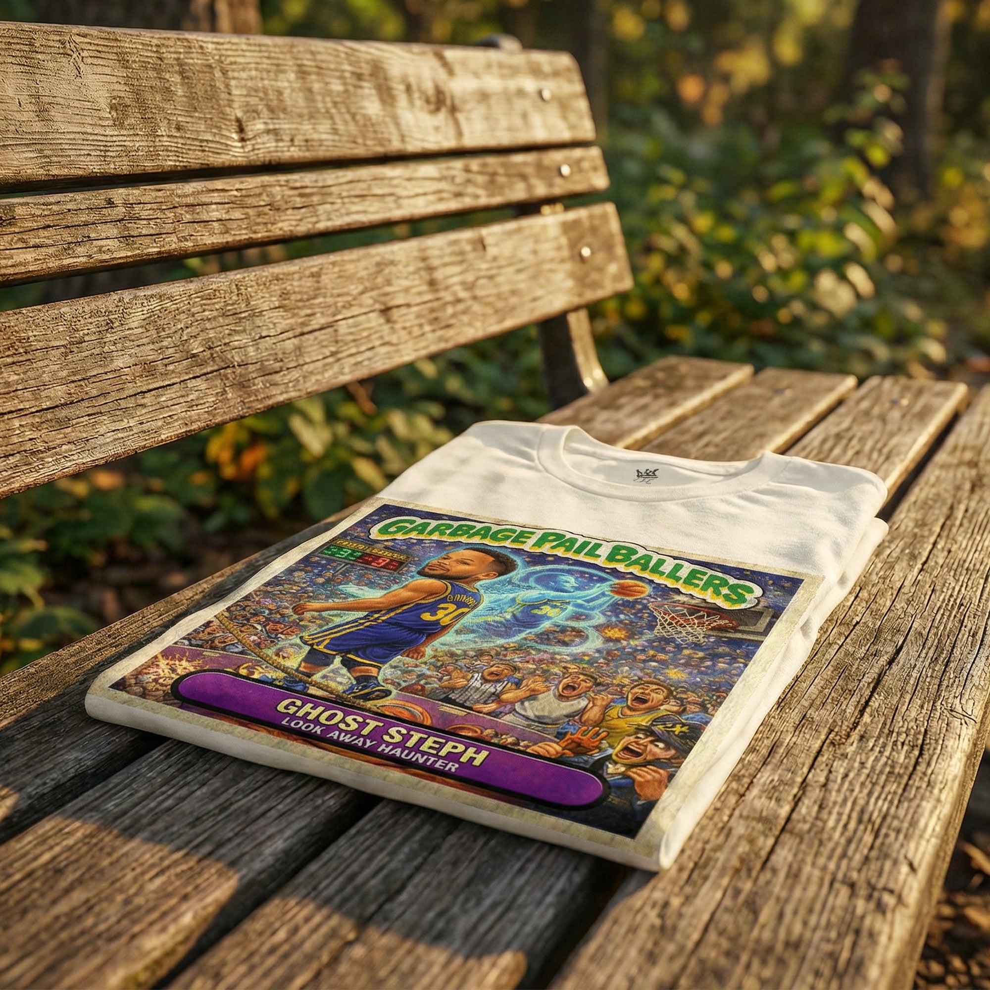 Part of the Vintage Hardwood Classics series, this Hardwood Edition design showcases an original Garbage Pail Ballers illustration inspired by classic basketball dominance. Each tee features full parody artwork on the front and complete “Garbage Pail Stats” on the back — because the joke doesn’t stop when you turn around.