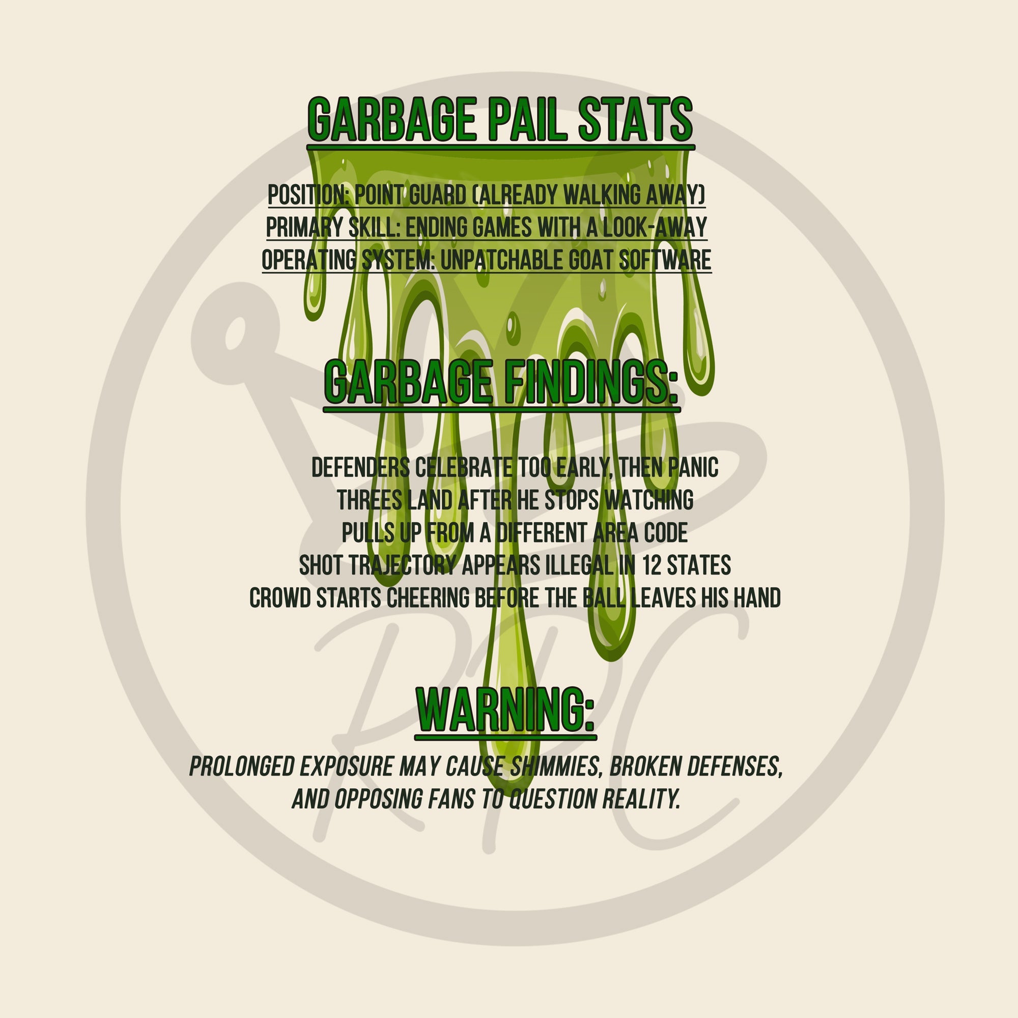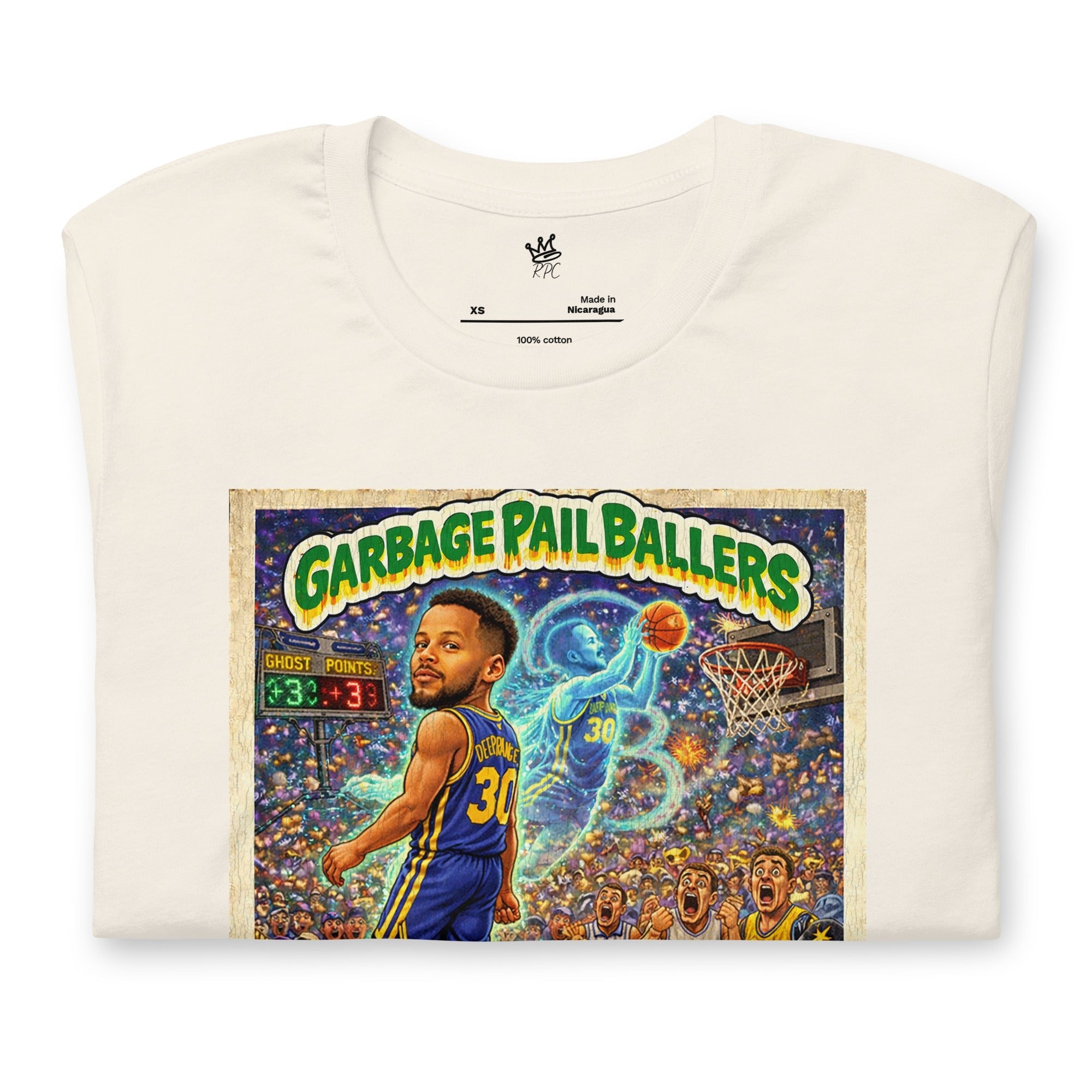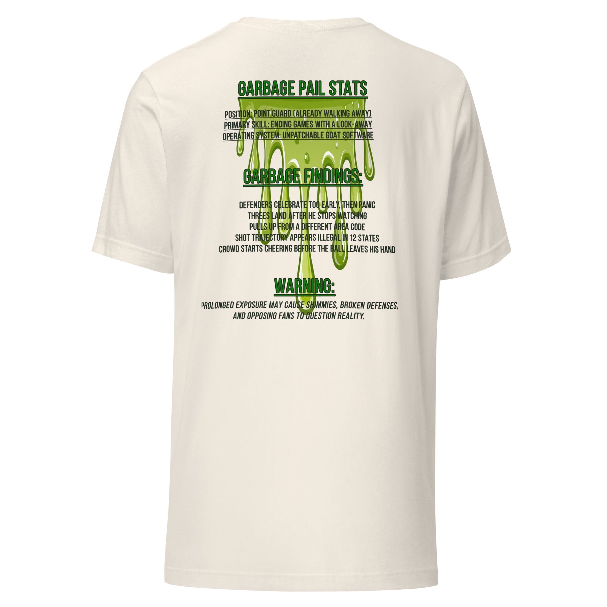 Part of the Vintage Hardwood Classics series, this Hardwood Edition design showcases an original Garbage Pail Ballers illustration inspired by classic basketball dominance. Each tee features full parody artwork on the front and complete “Garbage Pail Stats” on the back — because the joke doesn’t stop when you turn around.